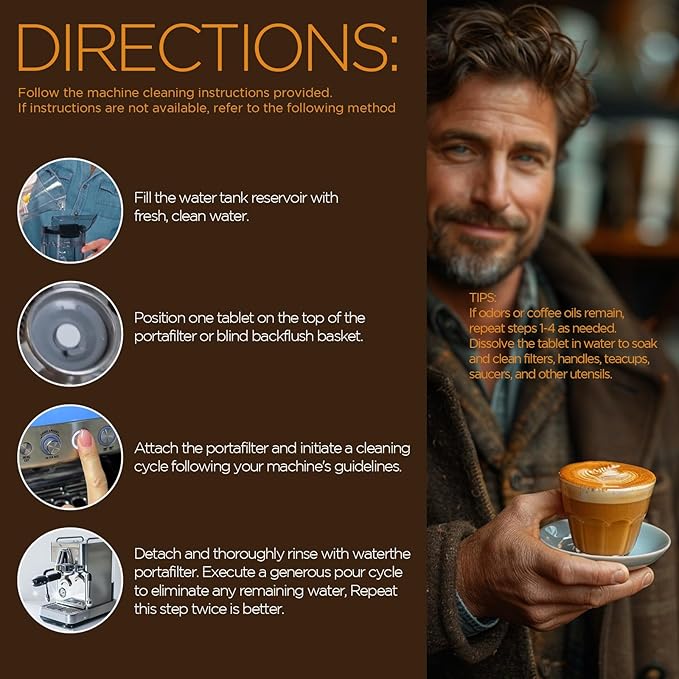 - Easy to Use: Position a tablet on the top of the portafilter or blind backflush basket for hassle-free cleaning.