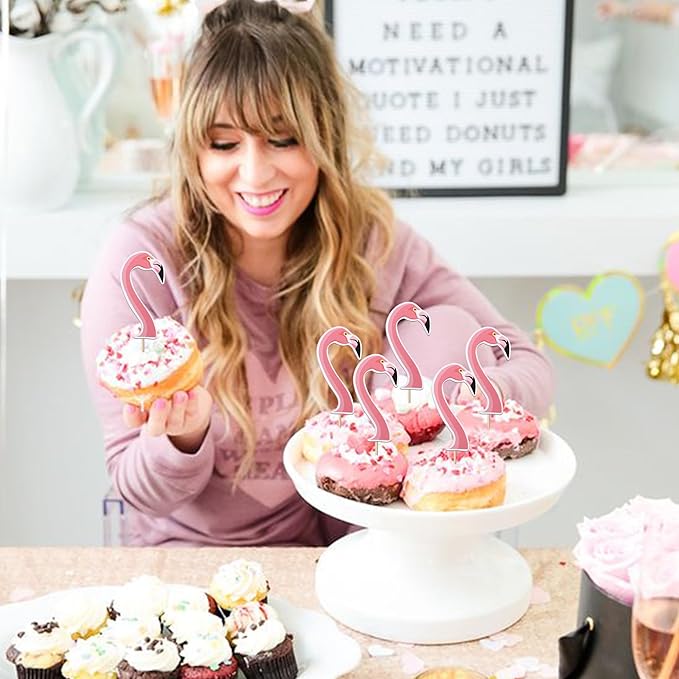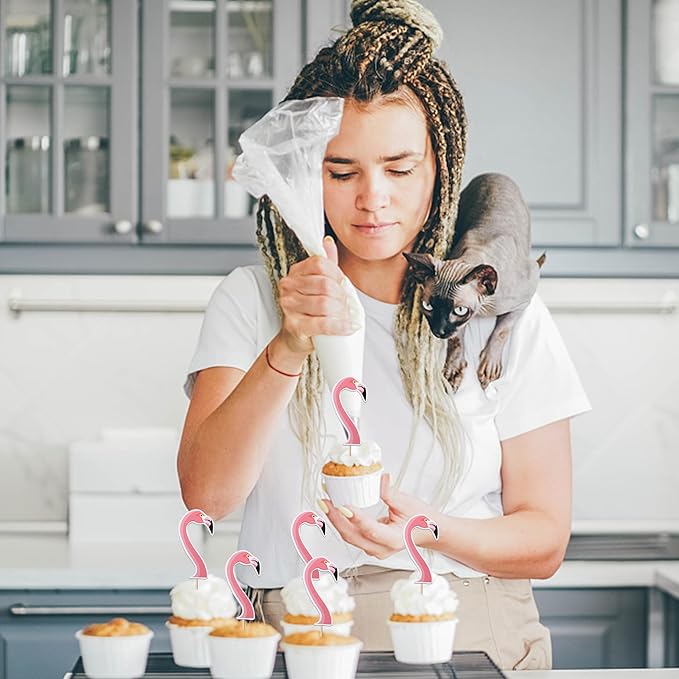 40 Pack Flamingo Cupcake Toppers Tropical Cupcake Picks for Baby Shower Flamingo Summer Hawaiian Beach Theme Birthday Wedding Party Cupcake Decorations Supplies Pink