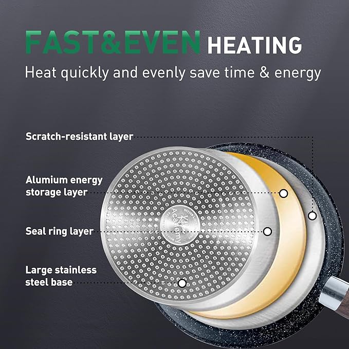 - 𝙃𝙚𝙖𝙡𝙩𝙝𝙮 𝘾𝙤𝙤𝙠𝙬𝙖𝙧𝙚 𝙎𝙚𝙩 𝙬𝙞𝙩𝙝 𝙏𝙤𝙭𝙞𝙣-𝙁𝙧𝙚𝙚: Made of natural granite, our kitchen cookware set is Teflon-free and guarantees no PFAS, PTFE, PFOA, lead, or cadmium.Ideal choice for safety-conscious families, especially those with babies