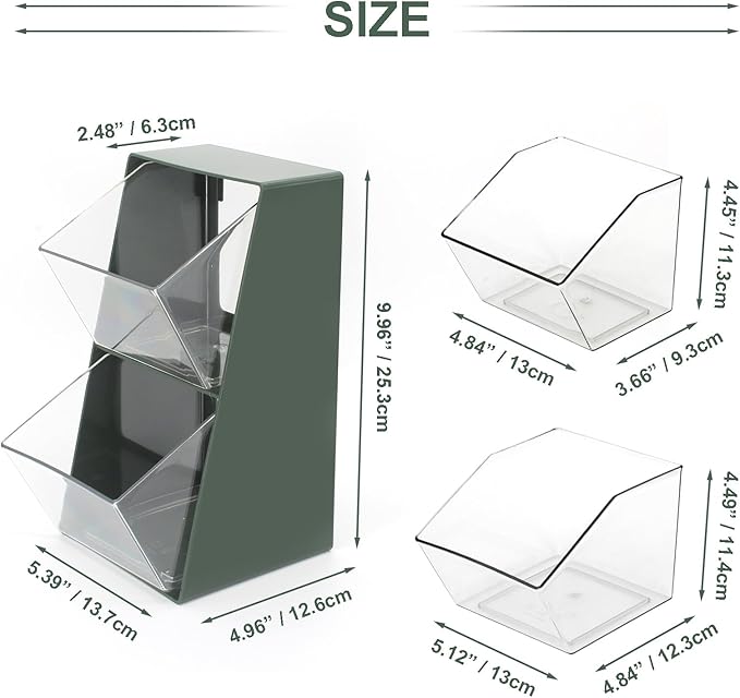 - Modern Design, Washable, Space-saving--- Cream and vintage green desktop coffee pod storage go well with any home décor. Each drawer can be easily removed, allowing for convenient cleaning and organizing. The drawers great for storing all kinds of essentials. It doesn't occupy excessive desktop space, helping to maintain a tidy and organized workspace or kitchen area.
