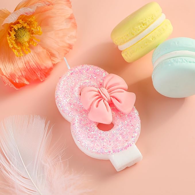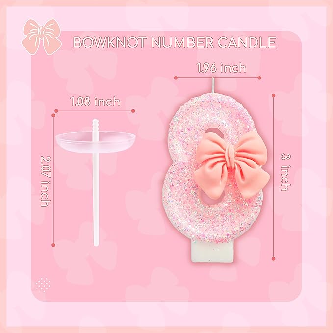- New: 3 Inch Large Pink Bowtie 8 Number Birthday Candle designed to make your cake a memorable celebration!