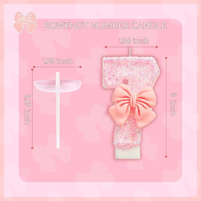 - New: 3 Inch Large Pink Bowtie 7 Number Birthday Candle designed to make your cake a memorable celebration!
