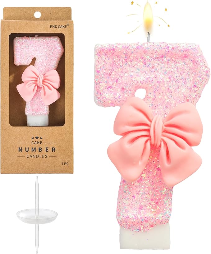 PHD CAKE Number 7 Pink Bowknot Birthday Candles, Cute Themed Number Candles, Party Celebration
