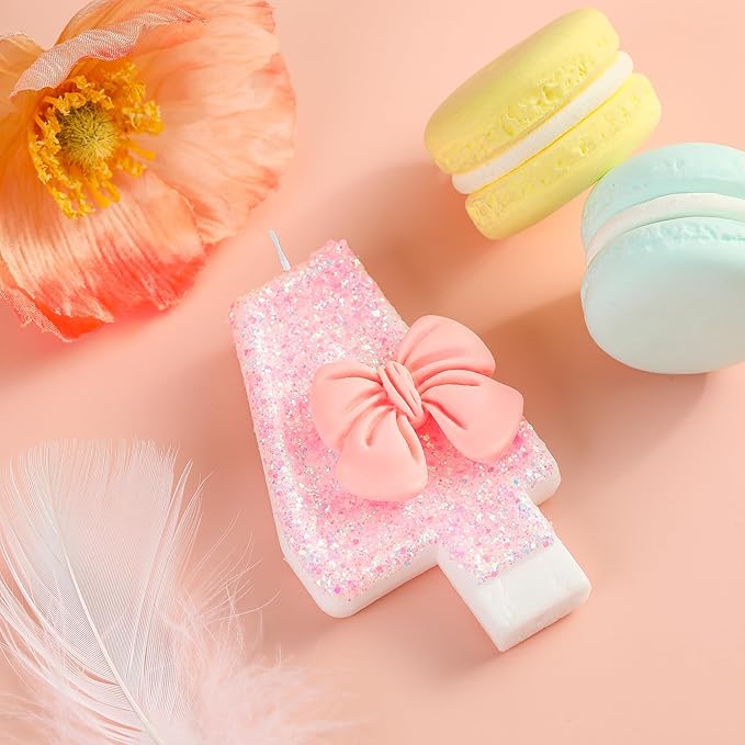 - New: 3 Inch Large Pink Bowtie 4 Number Birthday Candle designed to make your cake a memorable celebration!