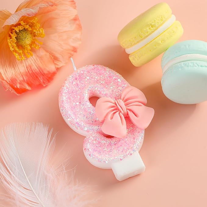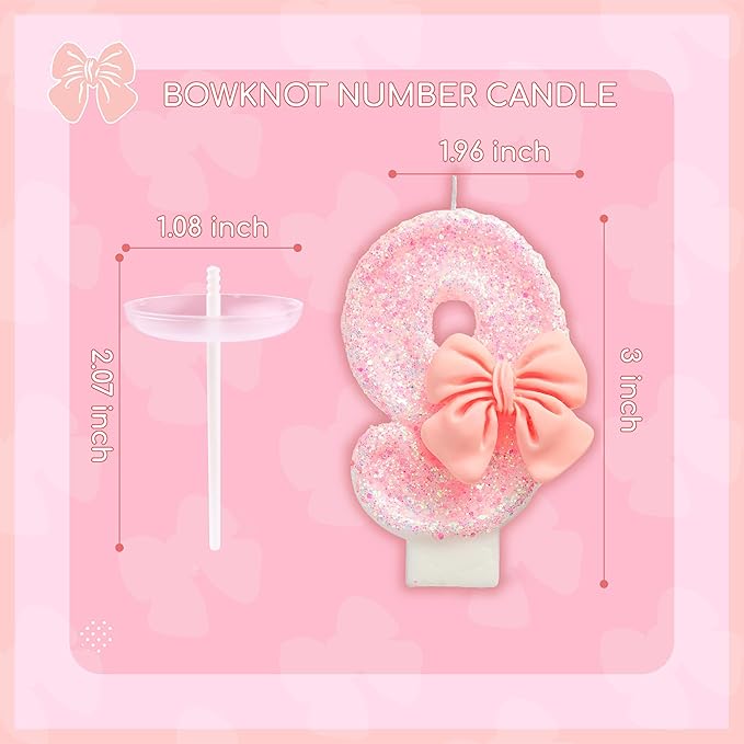 - New: 3 Inch Large Pink Bowtie 9 Number Birthday Candle designed to make your cake a memorable celebration!