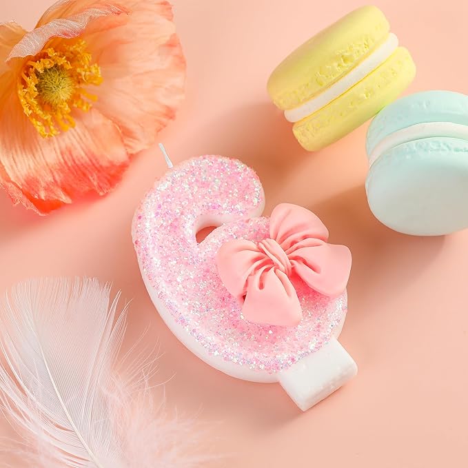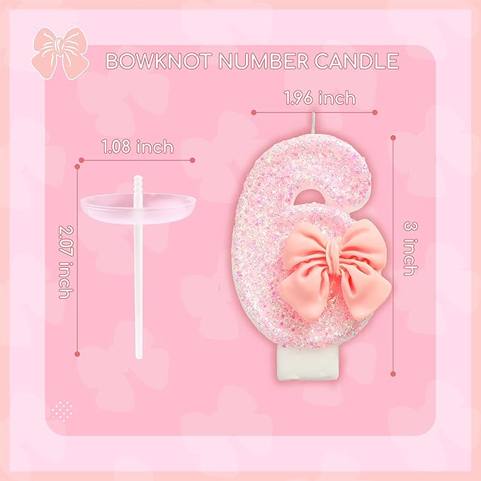 - New: 3 Inch Large Pink Bowtie 6 Number Birthday Candle designed to make your cake a memorable celebration!