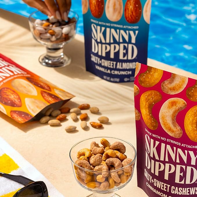 - RESEALABLE BAGS: Best enjoyed anytime, anywhere. Dive in! This pack includes (5) resealable 4.0 oz Bags of SkinnyDipped Salty + Sweet Maple Almond Crunch.