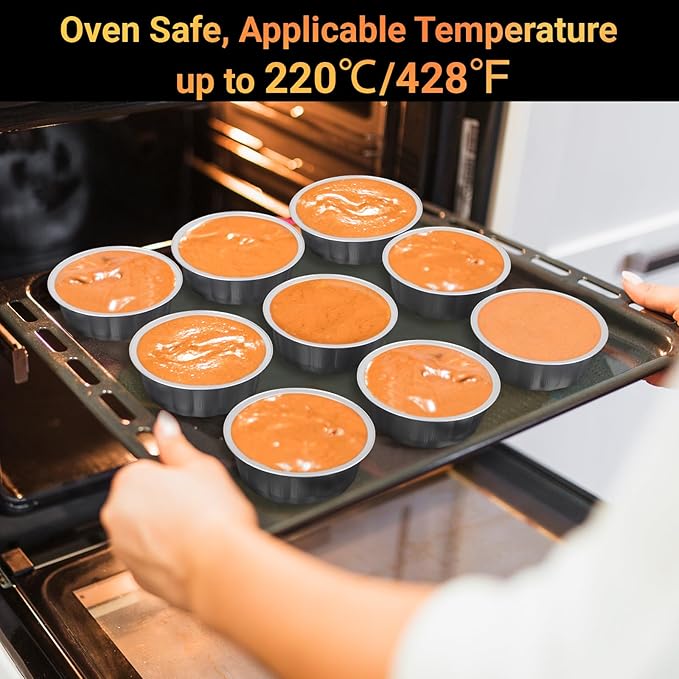 - Robust Aluminum Build --- Crafted from high-quality aluminum, these baking cups are both lightweight and sturdy, they can withstand oven temperatures up to 220°C/428°F without warping or losing shape.