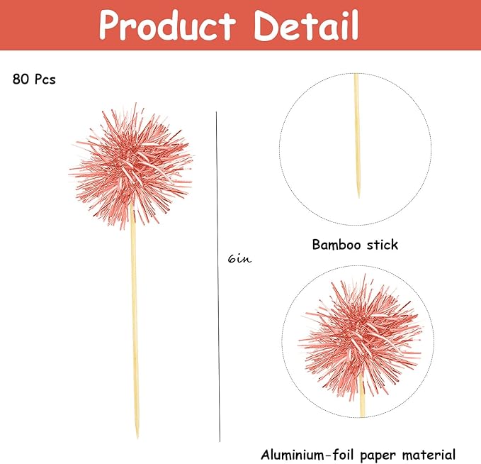 - [What You Will Get] the package includes 80 pieces of firework tinsel picks in rose gold, sufficient quantity and various colors to meet your needs on cake decorations.