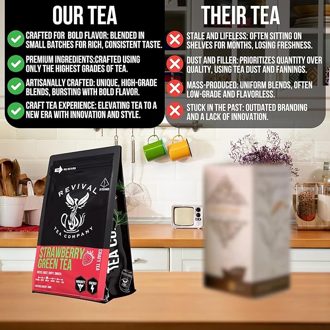 - Discover the Difference: Elevate your tea collection with our Strawberry Green Tea and experience the Revival Tea Company difference today!