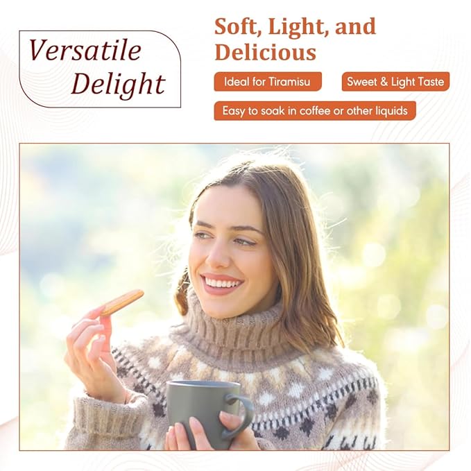 - AUTHENTIC ITALIAN QUALITY: Our lady fingers offer the genuine flavor and texture of traditional Italian sponge biscuits. Known for their light, airy texture and subtle sweetness, these biscuits are specifically designed for making the classic tiramisu dessert. These tiramisu cookies make your homemade tiramisu taste like it came straight from an Italian bakery.