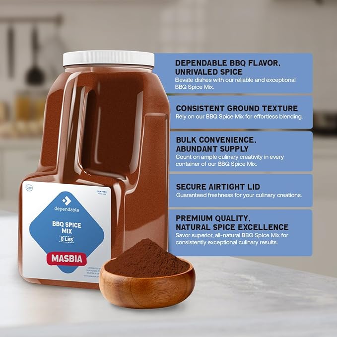Dependable Food BBQ Spice Mix - 8 Lb. Resealable Jug - Non-GMO, Kosher ??Perfect Blend for Grilling, Smoking, and Roasting