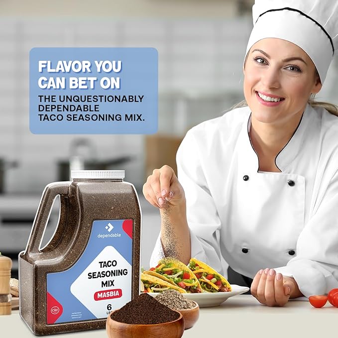 Dependable Food Taco Seasoning - 6 Lb. Resealable Jug - Non-GMO, Allergen-Free, Kosher ??Authentic Mexican Flavor for Tacos, Burritos, & More