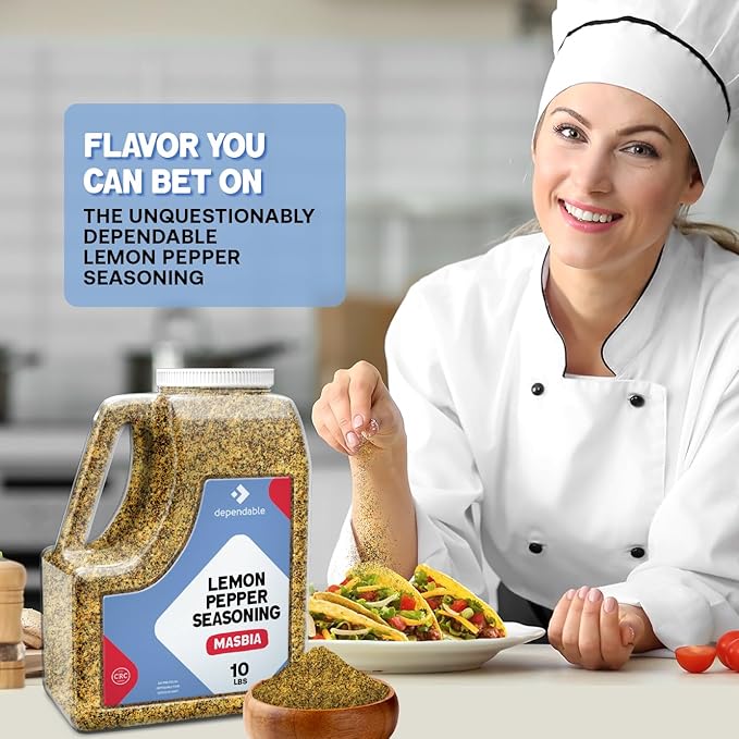 Dependable Food Lemon Pepper Seasoning - 10 Lb. Resealable Jug - Non-GMO, Kosher ??Bulk Pack for Zesty Flavor