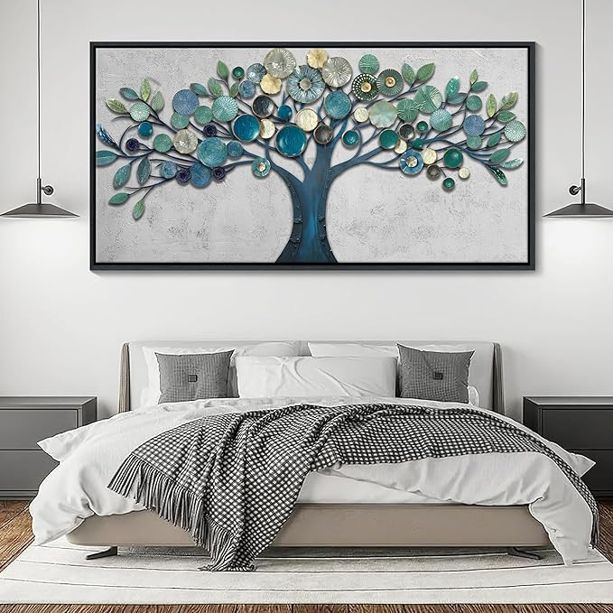 - Large Bedroom Wall Decor:The beauty of your home with living room wall decor featuring a tenacious tree of life design concept. This canvas art is with a grey background and Metal Theme branches and leaves, bedroom wall decor makes your home more stylish.