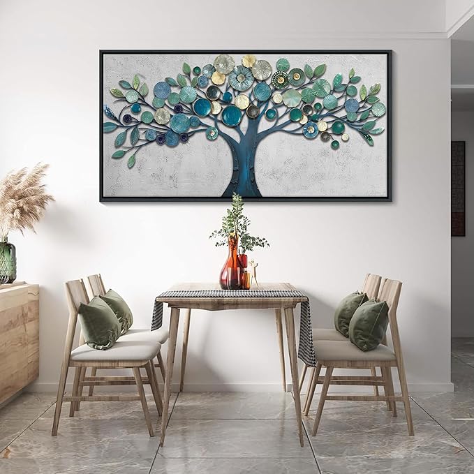 - Large Modern Teal Wall Art Piece:The size tree of life is 29x58 IN,the layered leaves and navy blue branches with metallic texture are inlaid on the gray background, bringing a strong visual impact.This unique style wall art is a addition to your home decor.