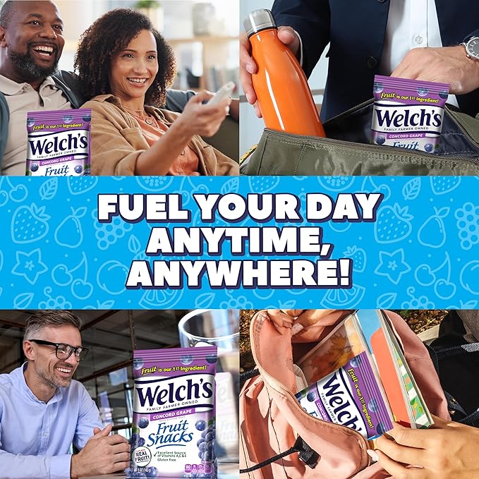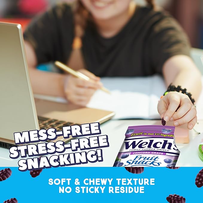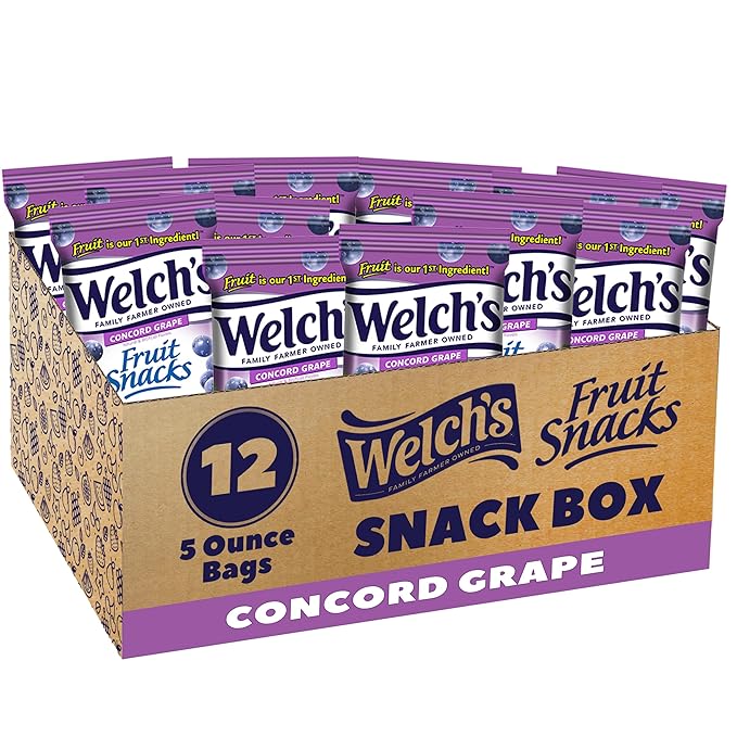 - 12 CT SNACK BOX - Contains 12Ct of 5oz Snack Packs of Welch's Fruit Snacks in delicious Concord Grape flavor