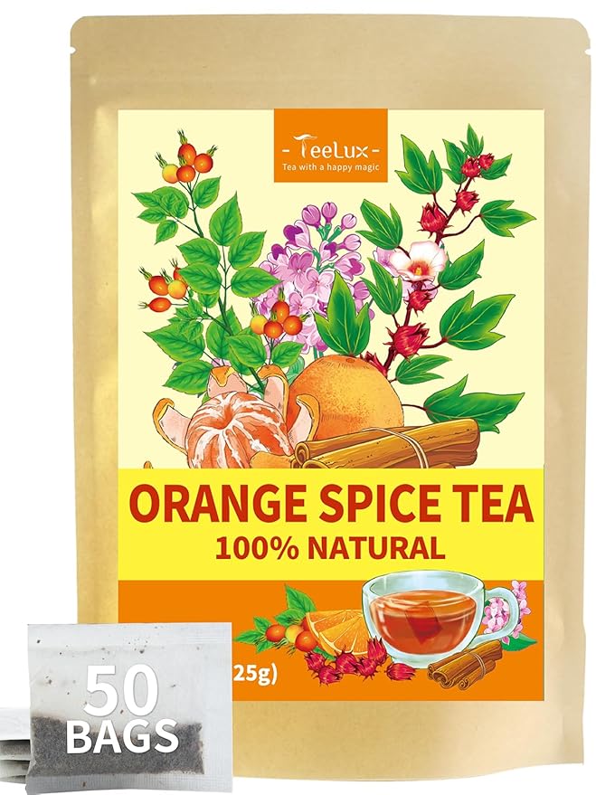 TeeLux Orange Spice Tea, Blended Rosehips with Cinnamon & Hibiscus, Refreshing & Soothing Taste, Caffeine Free, 50 Count