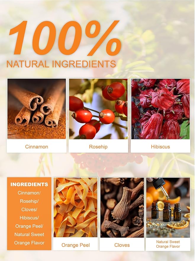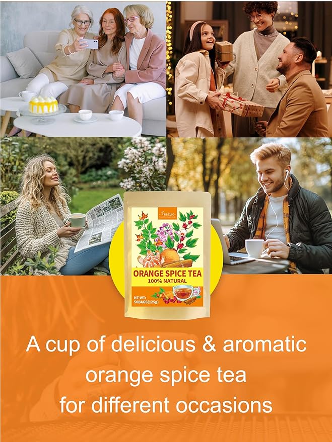 - [NATURAL & FRESHNESS] - Gluten-free, sugar-free, without artificial flavor, simple and healthy. Packaged in high-quality foil-lined kraft paper bags to keep orange spice tea fresh.