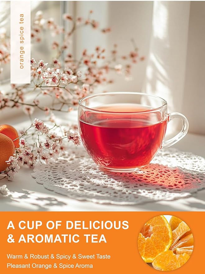 - Aromatic Blend: This tea is a delightful blend of orange peel and warm spices like cinnamon and cloves.