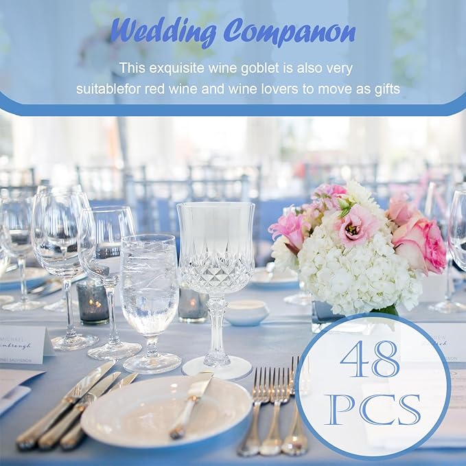 48 PCS Plastic Wine Glasses Clear,Reusable Plastic Wine Glasses,White Goblet Glass,Durable and Sturdy Cups Can Be Used for Various Parties Such as Weddings!