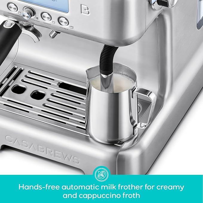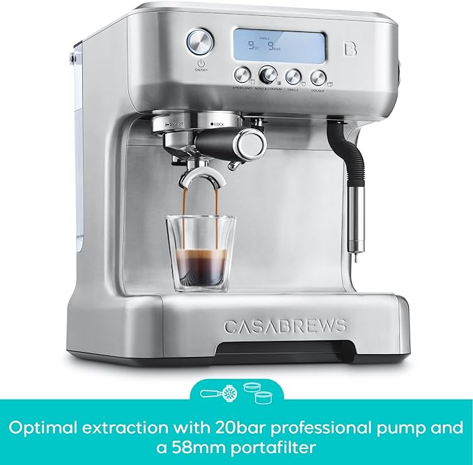 - Special Feature : 20 Bar Espresso Machine with LCD Display, Espresso Maker with Automatic Milk Steam Wand, Espresso Coffee Maker with 58mm Brewing System, Great Gift for Father, Mother and Coffee Enthusiasts, Great Gift Ideas of Wedding, Housewarming, Latte Machine, Latte Maker, Brushed Stainless Steel Coffee Machine, Cappuccino Machine, Cappuccino Maker, Expresso Maker for Home or Office, Note: You Can Watch More Instructional Videos by Clicking Visit the CASABREWS Store, Wedding Gift, Anniversary Gift, Birthday Gift, Housewarming Gift 20 Bar Espresso Machine with LCD Display, Espresso Maker with Automatic Milk Steam Wand, Espresso Coffee Maker with 58mm Brewing Sys… See more