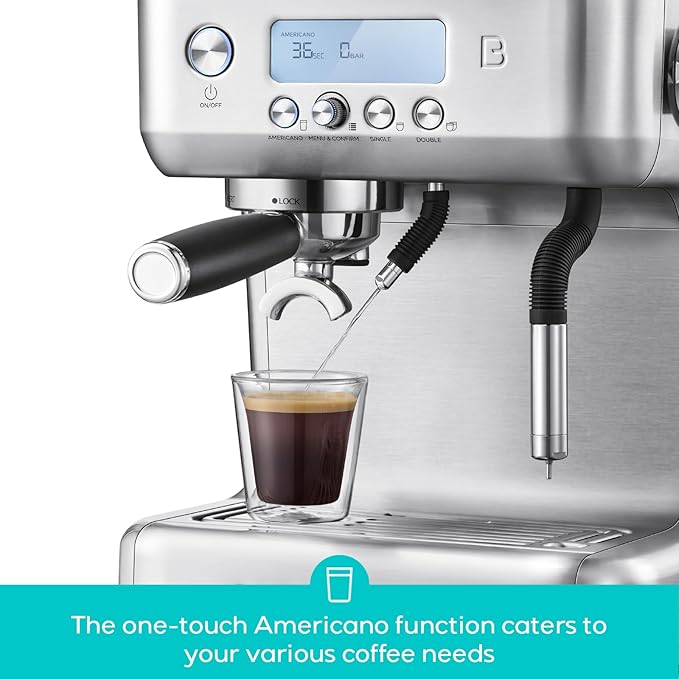 - Brew Your Favorite Espresso at Home: Featuring an intuitive LCD, this espresso machine guides you through the coffee-making process with animated instructions for extraction, brewing, and steaming. It provides precise information to help you create barista-quality lattes, cappuccinos, macchiatos, and Americanos in the comfort of your home. Additionally, the display delivers prompts and notifications, ensuring smooth operation and making it easy to craft the perfect espresso-based drinks
