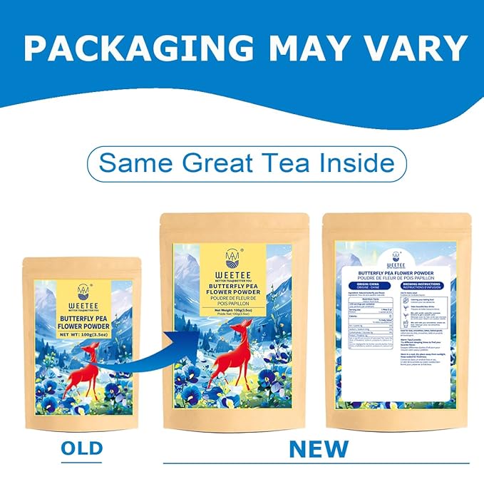 WT WEETEE Butterfly Pea Flower Powder, 100% Natural & Pure from Blue Butterfly Pea Flowers, Caffeine Free Herbal Tea For Blue & Purple Drinks