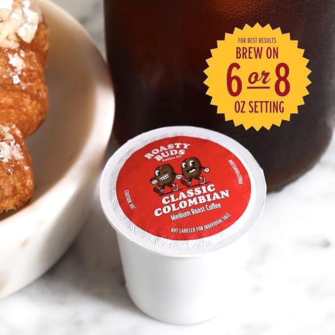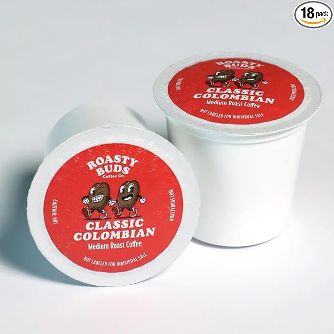 Roasty Buds Coffee Classic Colombian Pods 18 Count | Single-Serve 11g Per Pod | Recyclable, Gluten-Free, Non-GMO, No Sugar/Dairy/Soy/Egg (18 Count, Classic Colombian)