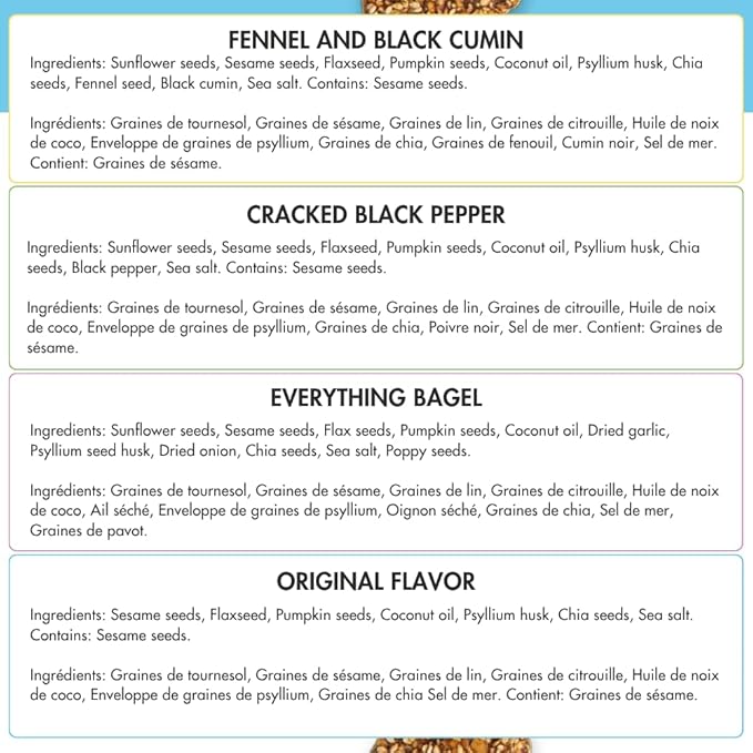 - CLEAN, PLANT-BASED INGREDIENTS: Made with a wholesome mix of sunflower, sesame, chia, flax, and pumpkin seeds, plus coconut oil and psyllium husk, these 100% all-natural crackers have no sugar, seed oils, fillers, or artificial additives; just pure, crunchy nutrition in every bite
