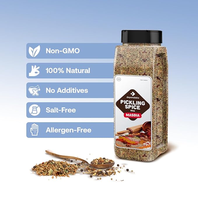 - ROBUST FLAVOR: Dependable Foods Pickling Spice offers a perfect blend of aromatic pickling spices to elevate the flavor of your pickled foods; enjoy the robust and unmistakable taste with just a sprinkle or spoonful.