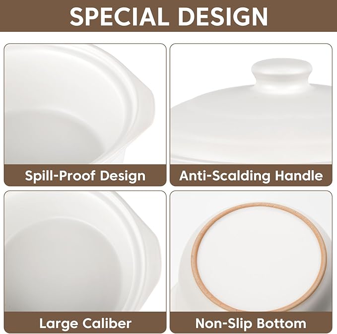 - Ceramic casserole with lid design,the thickened pot wall ensure heat evenly and self-circulating to lock food's freshness.Ideal for making sauces, soup, pasta, rice, stew meat,Chinese medicine etc.
