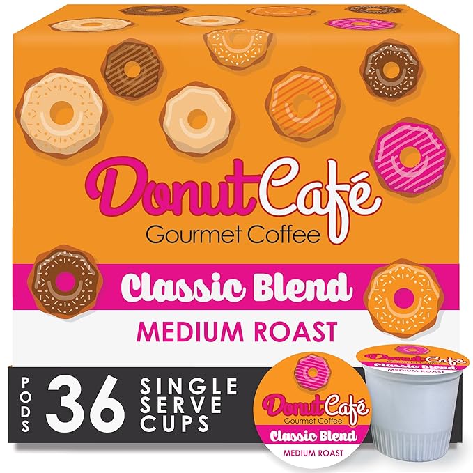 Donut Café - Coffee Gourmet Pods, Classic Blend, Medium Roast – Non-GMO, Gluten Free – Compatible with Keurig K Cup Brewers – Smooth & Delicious – 36 Count
