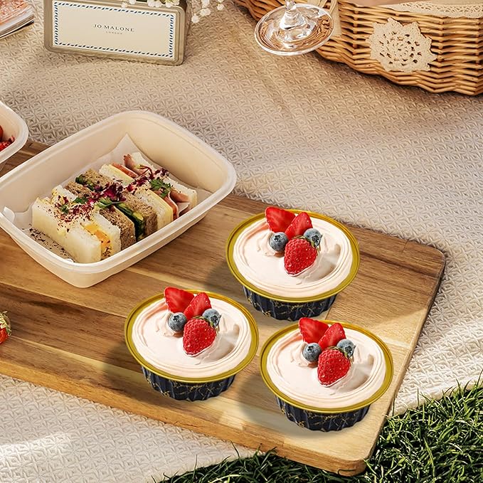 - Wide Range of Usages: The perfect size baking mold cups are suitable for any type of food and dessert, such as muffins, mousse, bread, pudding, etc; Whether catering for parties and weddings, or baking food gifts for loved ones or family birthdays and Valentine's Day, these aluminum foil baking cups can meet your needs