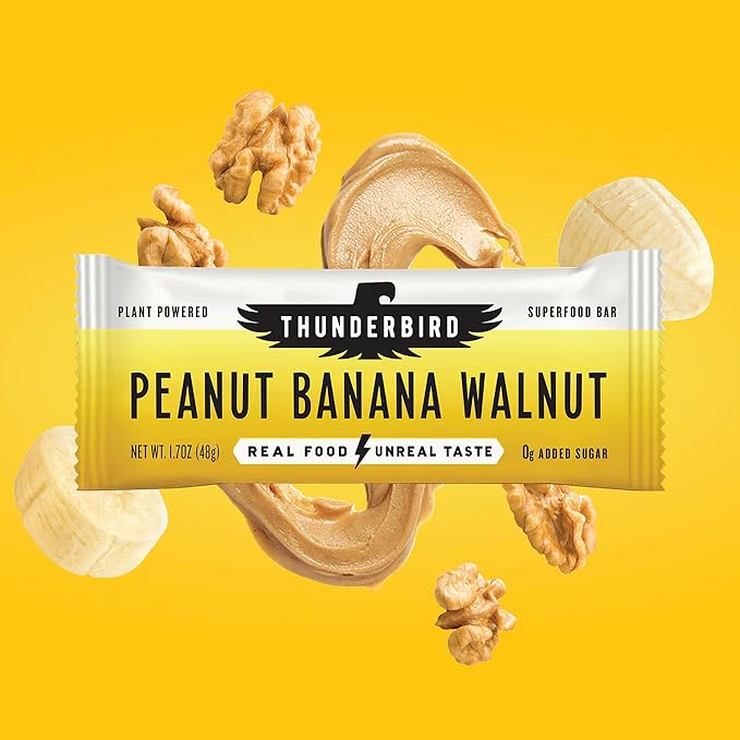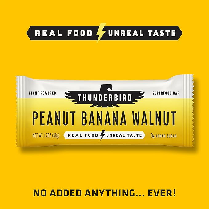 Thunderbird Bars Energy Snack, Gluten-Free with Protein, Healthy Real Food, Vegan Non-GMO, No Added Sugar, Peanut Banana Walnut Flavor (12 Count, 1.7 oz. Bars)