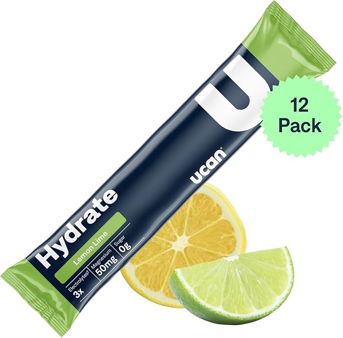 UCAN Hydrate Electrolyte Drink Mix (Lemon-Lime, 12 Stickpacks) Sugar-Free, Keto-Friendly, Vegan, Non-GMO, Gluten-Free Electrolyte Powder with Potassium & Magnesium for Runners & Athletes