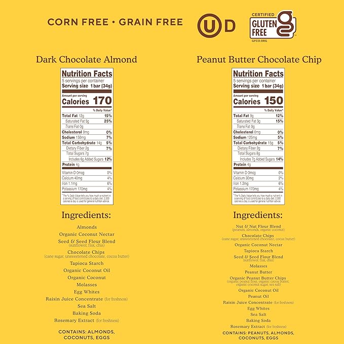 Simple Mills Almond Flour Snack Bars (Nutty Banana, Spiced Carrot Cake, Dark Chocolate Almond, Peanut Butter Chocolate Chip, and Chocolate Brownie) - Breakfast Bars (Pack of 5)