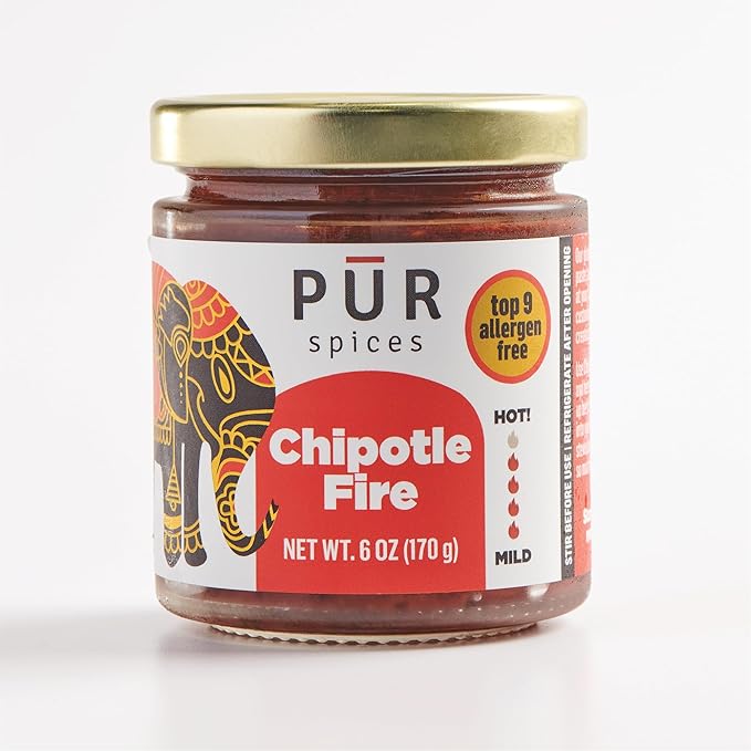 PUR Spices Chipotle Fire Spicy Hot Sauce I Chili Pepper Cooking Paste for Dipping, Chili Seasoning, Taco Sauce, Salsa I Plant Based, Gluten Free, No sugar added, Preservative and Additive Free I 6oz Jar