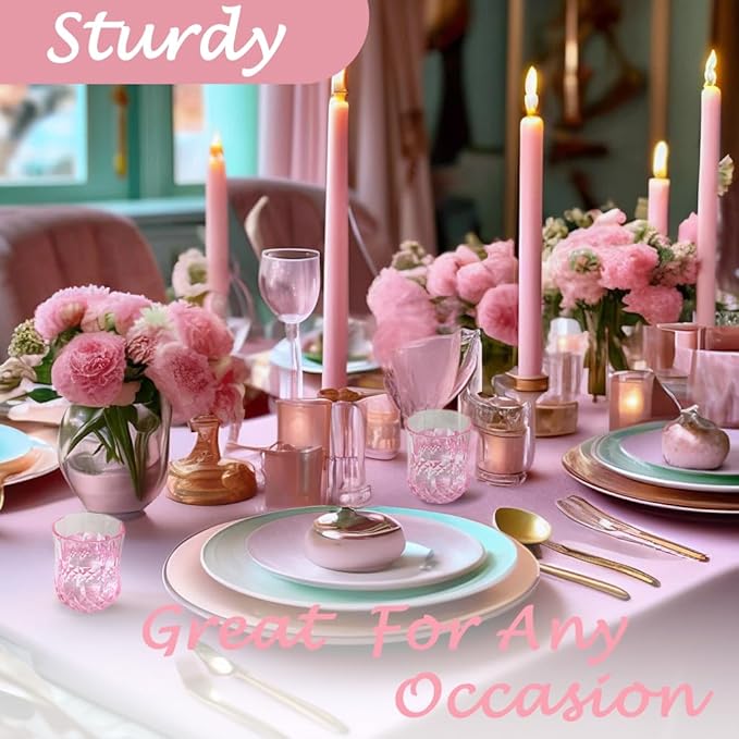 - 🍷🍷🍷Widely Used: Pink glasses are suitable for many occasions such as weddings, anniversaries, birthday parties, Joe's wedding banquets, New Year's Day, family gatherings, Christmas parties, Thanksgiving parties, Halloween parties, etc. This retro stemless wine glass and tableware set is an ideal choice for both indoor and outdoor gatherings