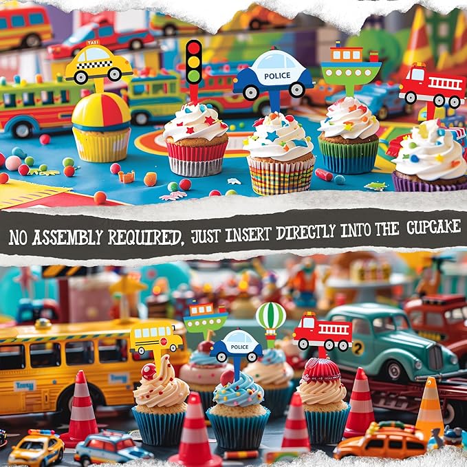 - TRANSPORTATION MAGIC - Set the wheels in motion for a fun party with these delightful transportation-themed cupcake toppers! Perfect for a transportation party, travel themed baby shower, or birthday celebration, these vibrant decorations will drive excitement to your dessert table.