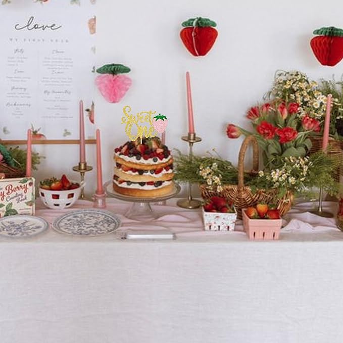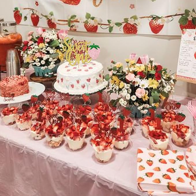 - APPLICATION:Perfect decoration for cupcakes,cookies,cakes,fruits,brownies,ice cream and more,particularly suit to use on first birthday party, any strawberry themed party and summer party decorations supplies