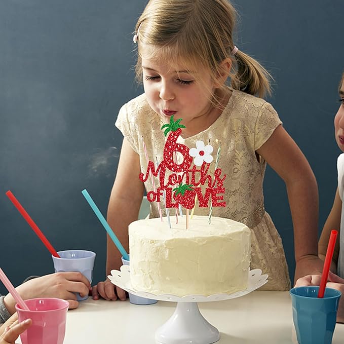 1 Pack Strawberry Happy 6 Months Birthday Cake Topper Red Half Way to One Cake Pick 1/2 Berry Sweet Half Birthday Cake Decoration Fruit Strawberry Theme Birthday Strawberry Party Cake Decorations