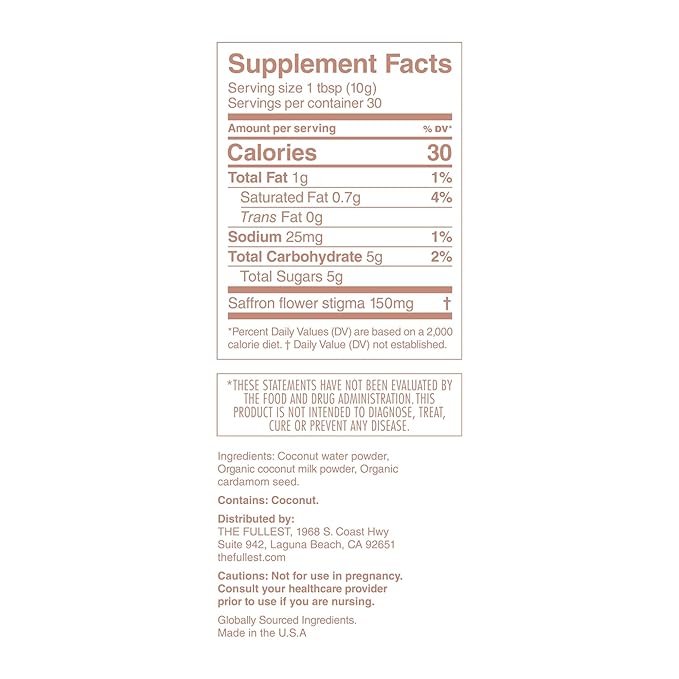 THE FULLEST - Warm Feelings 30-Day Supply Saffron Latte Bag - Saffron, Cardamom, and Coconut Milk Based Wellness Powder for Mood and Sleep Support, Sugar-Free, Vegan, and Gluten-Free, 30 Servings
