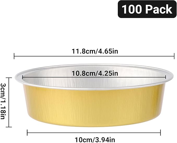 Beasea Aluminum Ramekins 100 Pack, 7.3oz 215ml Disposable Ramekins Foil Cups No Lids 4" Baking Ramekin Cup Cupcake Aluminum Mini Baking Cups for Party - Golden