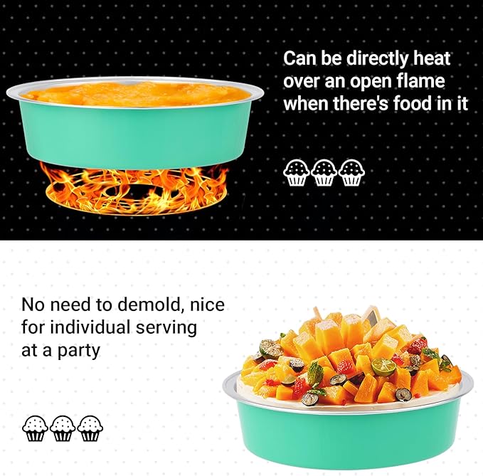 - Robust Aluminum Build --- Crafted from high-quality aluminum, these baking cups are both lightweight and sturdy, they can withstand oven temperatures up to 220°C/428°F without warping or losing shape.