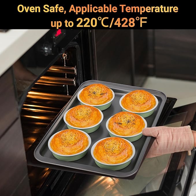 - Robust Aluminum Build --- Crafted from high-quality aluminum, these baking cups are both lightweight and sturdy, they can withstand oven temperatures up to 220°C/428°F without warping or losing shape.