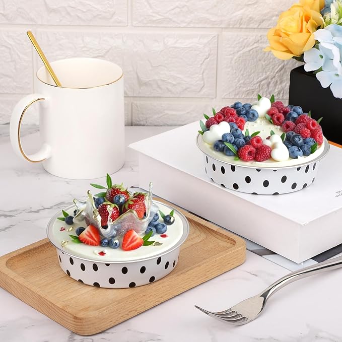 Beasea Aluminum Ramekins Disposable, 200 Pack 4" 7.3oz 215ml Baking Foil Cups Mini Ramekin Cup Cupcake Aluminum Baking Cups No Lids for Party - Black Dot in White
