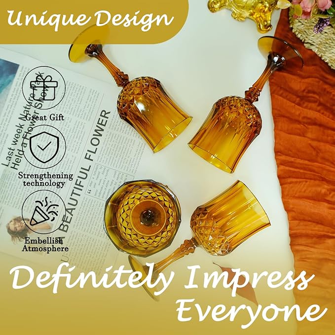 - 🍷🍷🍷【Product Description】 This set includes 48 retro-style amber party plastic wine glasses, providing ample quantity to meet your daily use and replacement needs. The elegant and sophisticated design makes your wedding reception unique