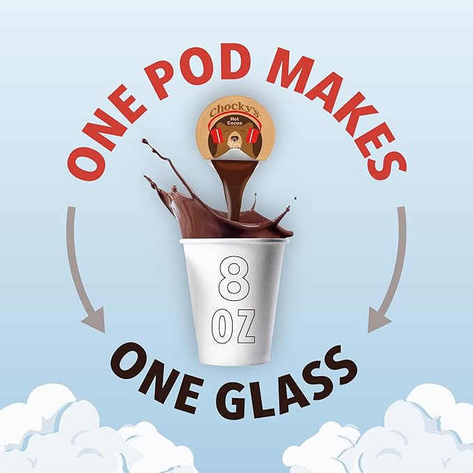 - NO MESS - Say goodbye to sticky, powdery messes. Chocky's Hot Cocoa pods are neat and clean, making them perfect for a hassle-free treat.