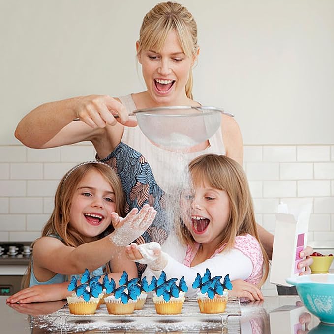 48PCS Edible Butterfly Cupcake Toppers Edible Butterfies for Cake Decorating Wafer Paper Edible Butterfly Cupcake Picks for Wedding Anniversary Kids Birthday Party Cake Decorations Supplies Blue